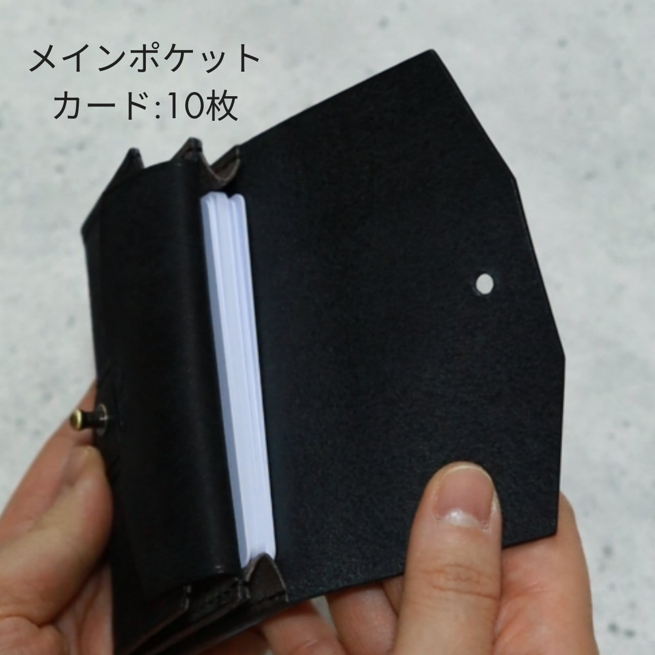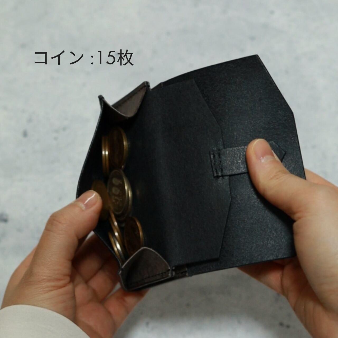 片手サイズのケースにはカード11枚と小銭15枚を収納でき、小さくても収納力は十分です。