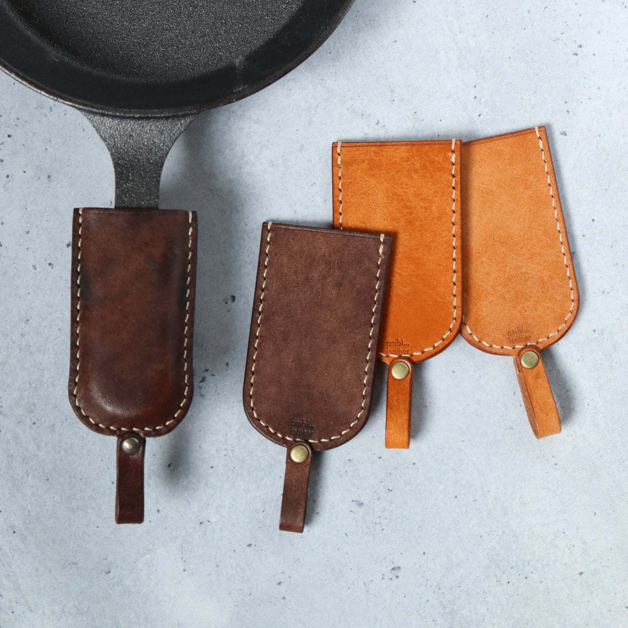 イタリアンレザーを使用したスキレットハンドルカバーです。